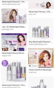 Today on TV, I noticed an infomercial playing for Cindy Crawford’s “Meaningful Beauty” skincare line. I assume all TV advertisements are simply that — schemes for companies to sell, nothing more.